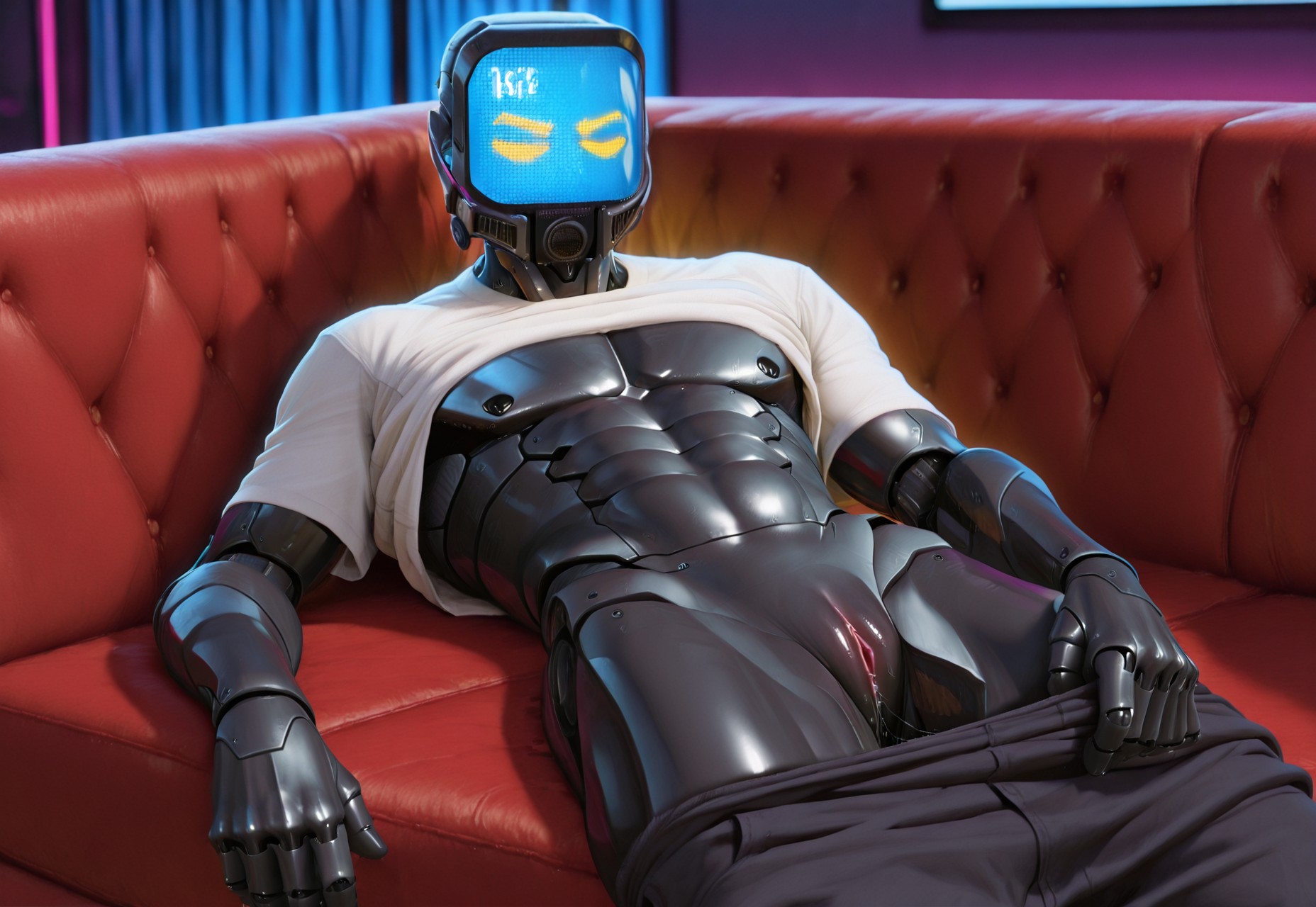 In this new version I've mixed the "screen face & tv head" concept with the "expressive mask/helmet" one, which is eyes that express emotions behind a helmet or mask. This mixed well with screen face as the two are often seen together.