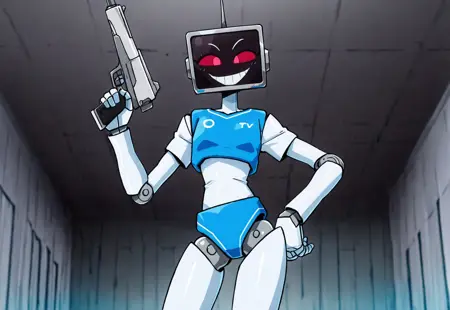 TV head/object head - head is replaced by TV or object, can display faces like above