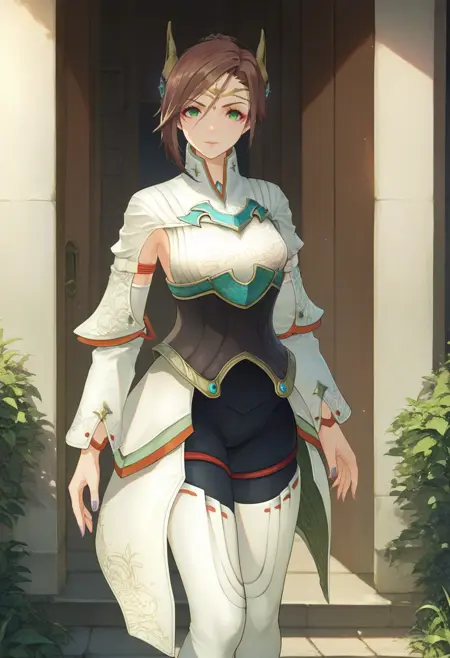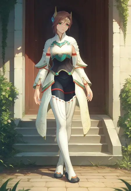军装, 手镯, 白色大腿靴, 修身长裤, 大腿绑带, 白色衬衫, 腰部斗篷, 护甲束胸, 覆盖式宝石