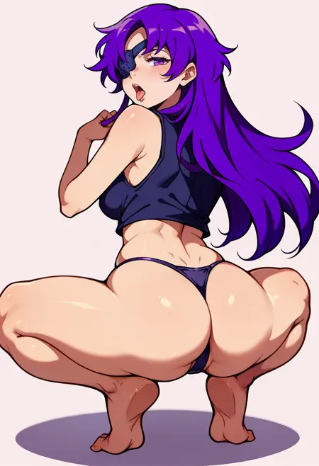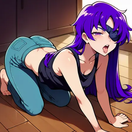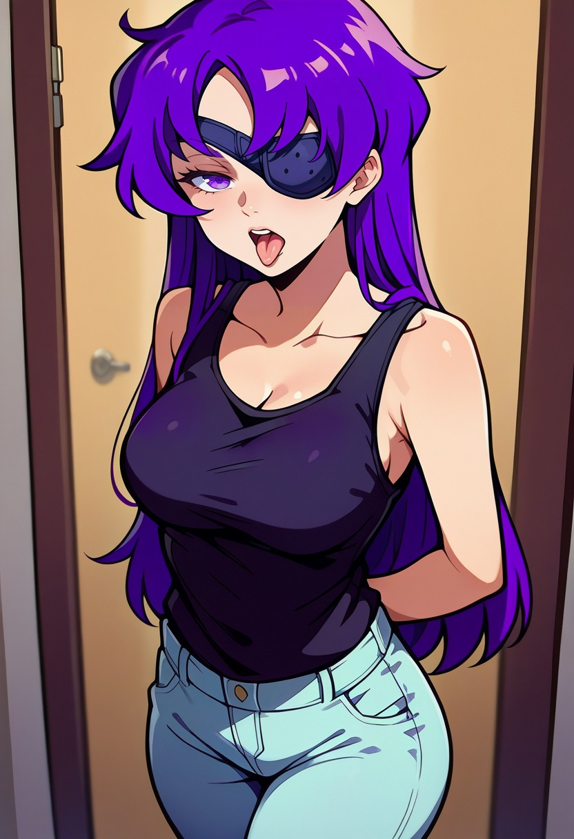ヘルパー: 長い髪、紫色の目、紫色の髪、アイパッチ