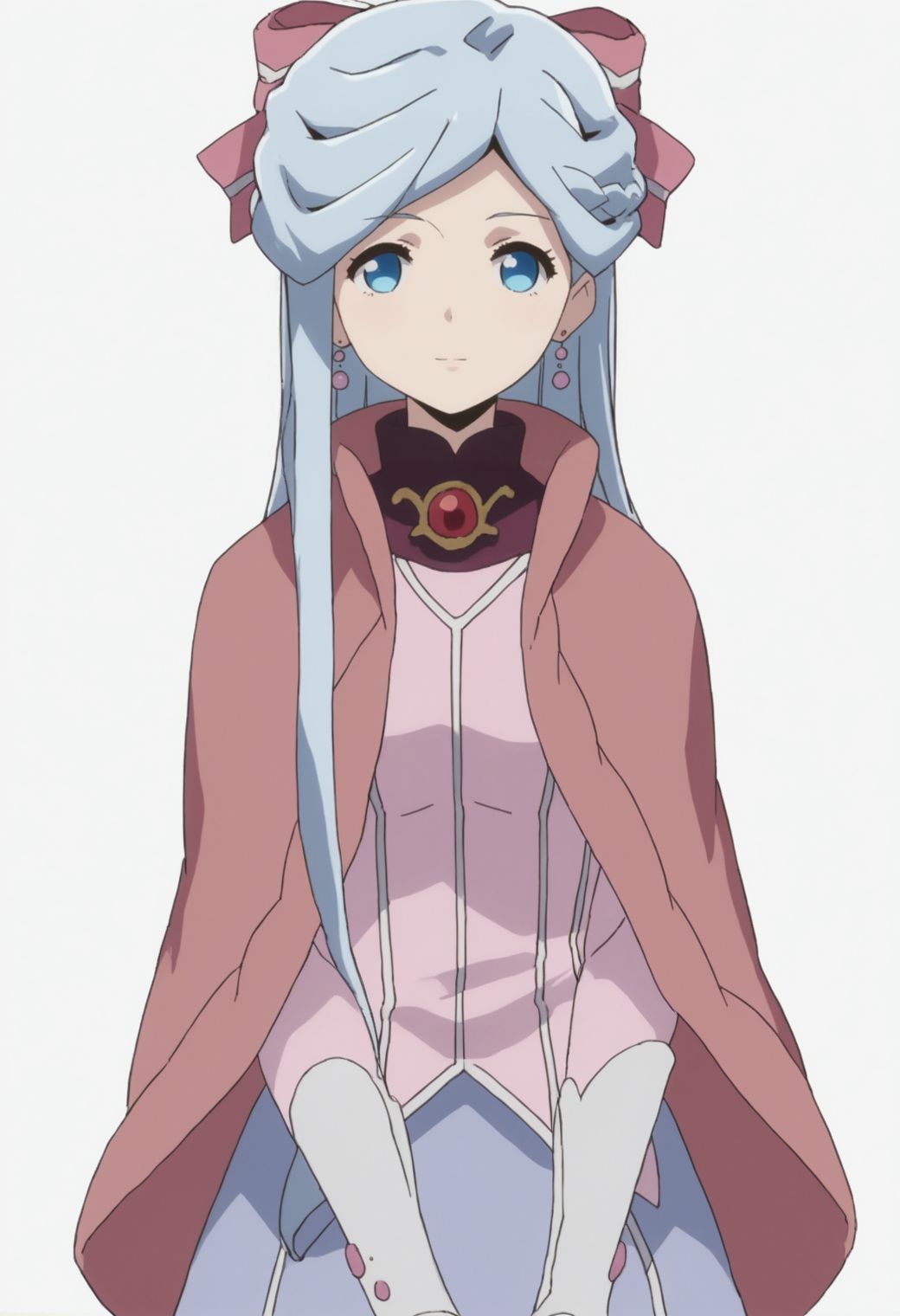 raynesia, half updo, cape, pink shir, jewelry, lilac skirt, hair bow