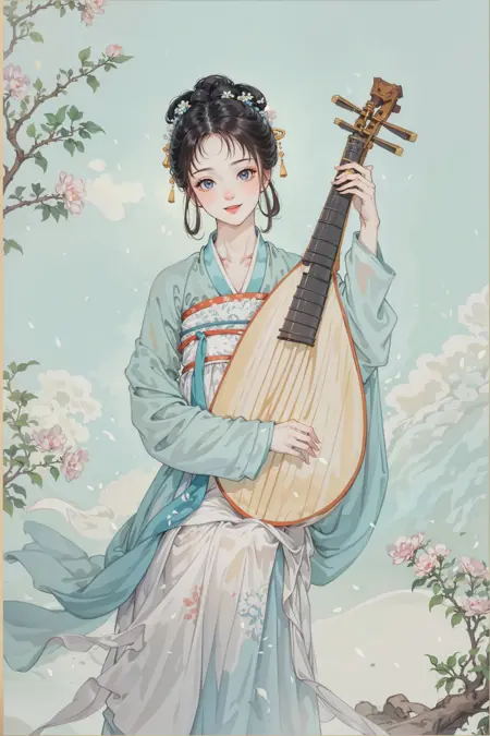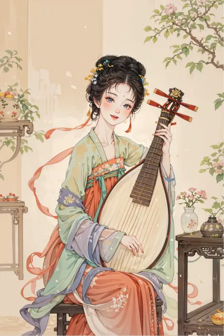 그들은 모두 다양한 자세로 피파를 연주하고 있습니다. 피파 악기를 좋아하는 친구들은 온라인에 사진을 업로드해 보세요.