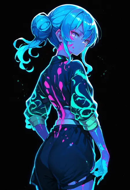 이 LoRA는 캐릭터에 자외선 발광 스타일을 적용하고, 바디페인팅과 페인트 튀김 효과를 추가하기 위해 설계되었습니다.