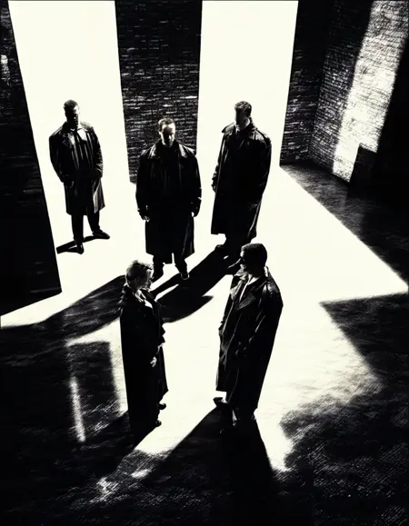 以《Sin City》风格呈现的围站在桌子旁的一群人电影画面