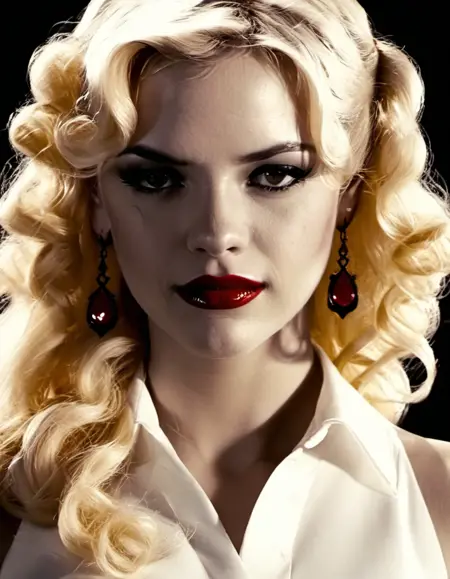 以《Sin City》风格呈现的金发女郎涂着红唇的电影画面