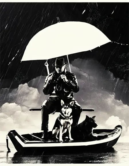 以《Sin City》风格呈现的头戴帽子的男人电影画面