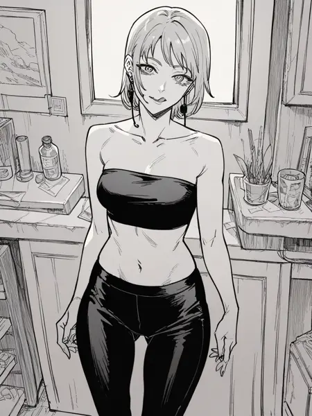 키워드: fami csm, 중간 길이 머리, 회색 머리, 둥근 눈,