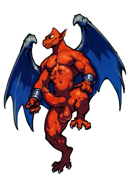 약간 과하게 그렸지만, 이는 Gargoyle's Quest 2의 파이어브랜드입니다. 대부분은 SNES의 Demon's Crest에 등장하는 그 후손이나 Ghost n' Goblin 시리즈의 레드 아레머라는 종을 더 잘 알고 있습니다.