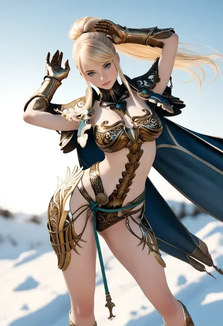 - 주요: d4rkb1fr0st, bikini armor, cape, pauldrons, gauntlets, high heel boots,