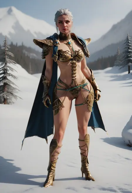 - 주요: d4rkb1fr0st, bikini armor, cape, pauldrons, gauntlets, high heel boots,
