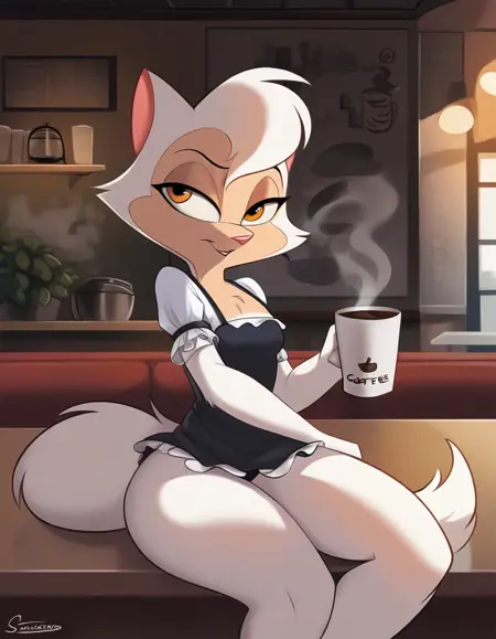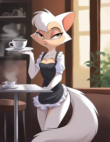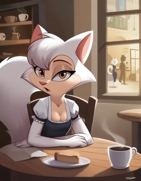 강화 태그: 자세한 털, 흰색 몸체, 흰색 피부, 흰색 털, 긴 털이 많은 꼬리, 가슴 털 덩어리, 작은 가슴