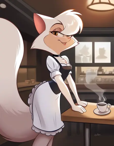 强化标签:精细蓬松的毛发,白色身体,白色皮肤,白色毛发,长蓬松尾巴,胸部毛簇,小乳房