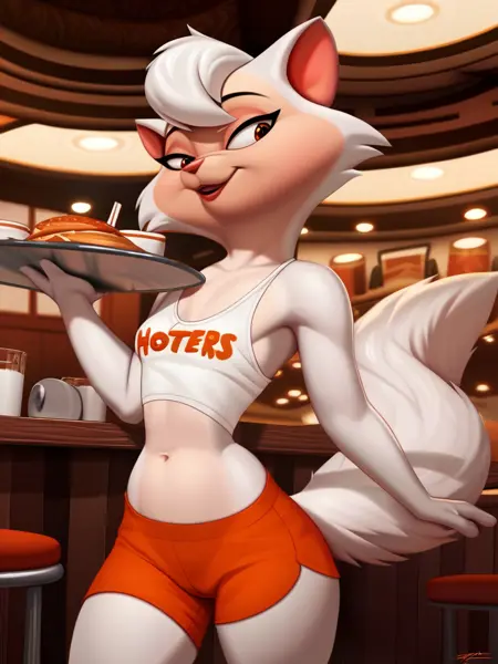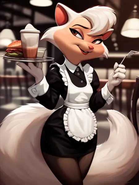 Reinforcement tags: detailed fluffy fur, white body, white skin, white fur, long fluffy tail, chest tuft, small breasts