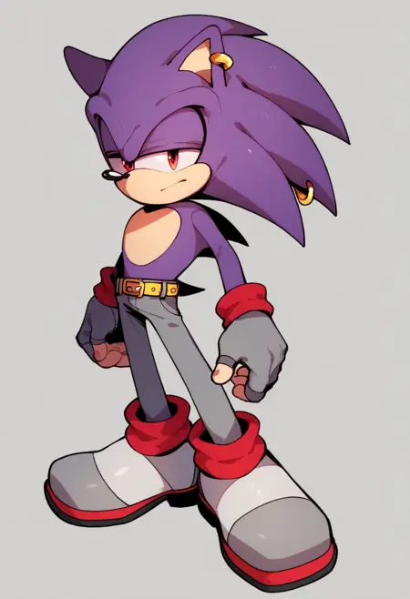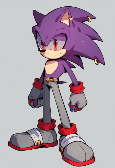 | 训练词汇 | ColdsteelFNF, red eyes, gloves, 1boy, animal ears, purple hair, shoes, pants, grey gloves, grey footwear, spiked hair, furry, furry male, gray body fur, grey footwear, animal nose, flat color, purple spiked hair, red eyes, gray pants, gray gloves with red cuffs, gold earrings. grey Sclera, mobian, sonic the hedgehog, long quills, gold earrings, grey fingerless gloves, yellow spiked belt, grey pants with purple details, purple and grey fur已复制! |