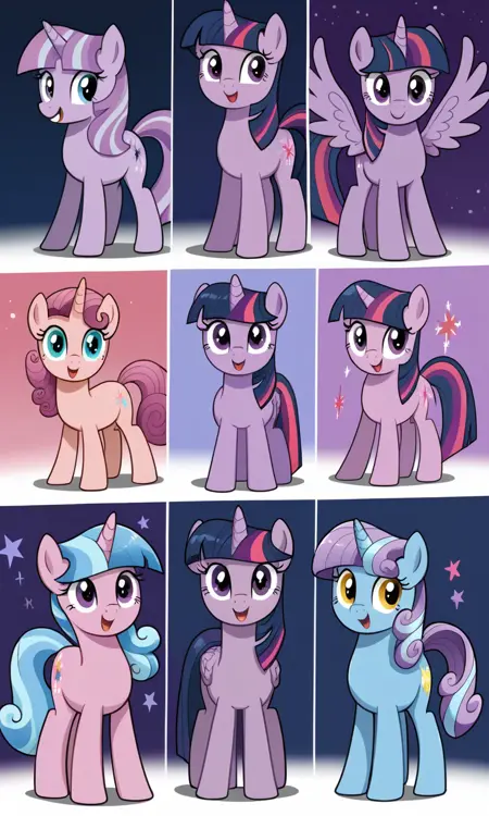新模型:暮光闪闪/原始版本,此版本为原始角色,包含两个形态——普通小马和有翼小马,如果你喜欢,可以尝试多个版本;我对模型很好地还原了角色特征感到满意 xd