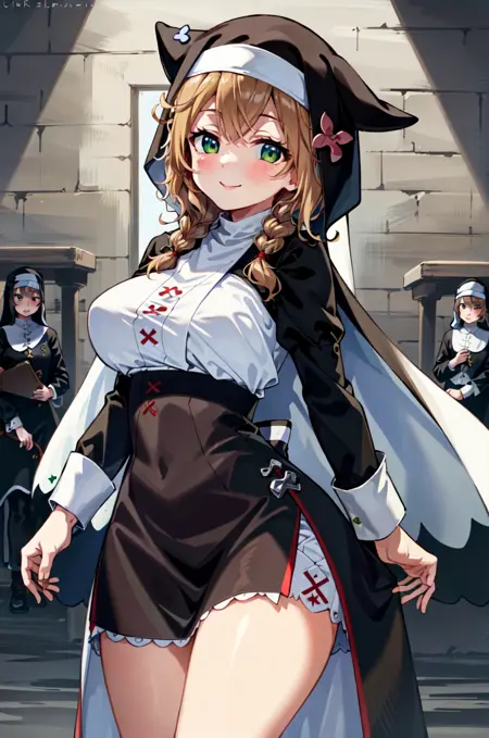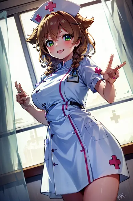 WarabedaMeijii, 긴 머리카락, 큰 가슴, 갈색 머리카락, 녹색 눈