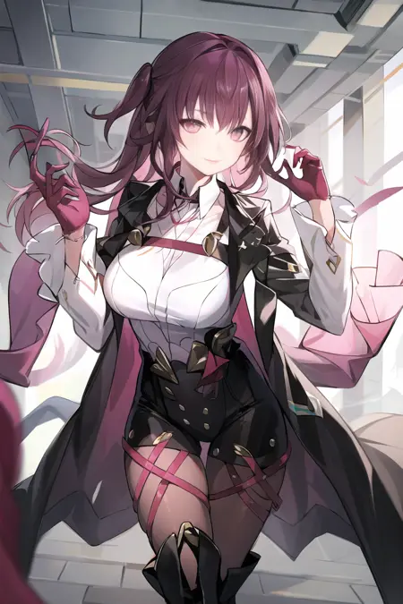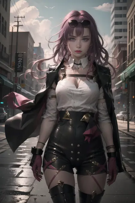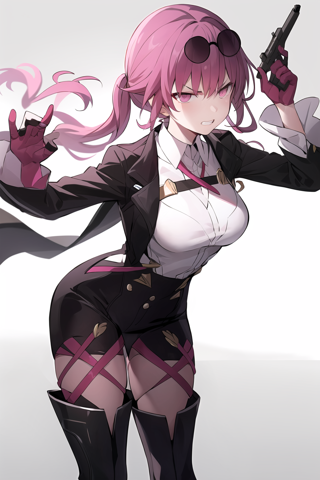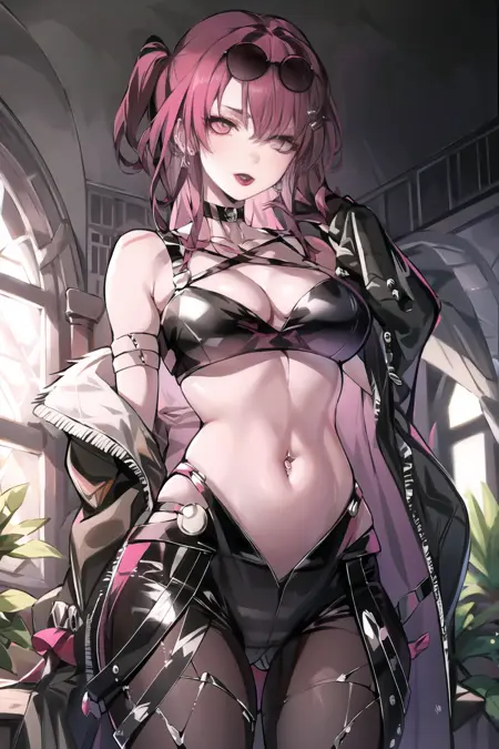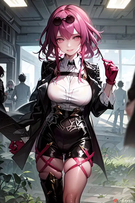 KafkaSR, eyewear on head, sunglasses, pink eyes - Trigger words to create her in her normal outfit. Remove at least KafkaSR to change the clothing.