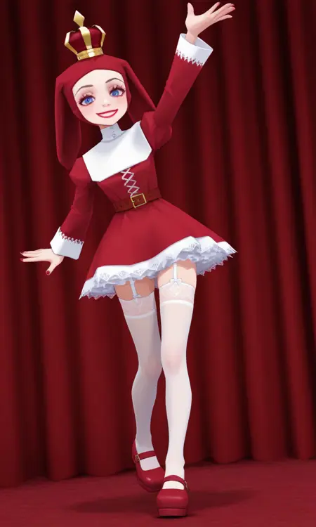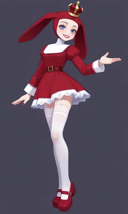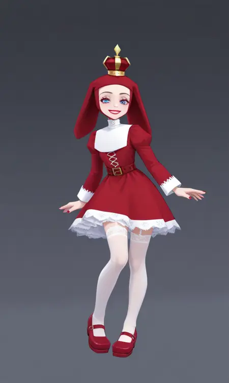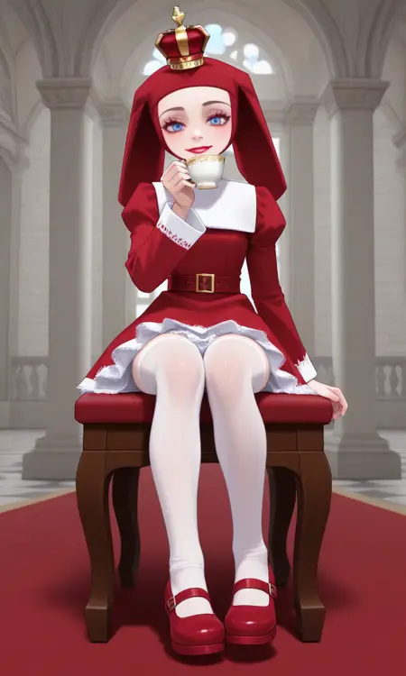 PriZuDDR, 1girl, red gold crown, red headdress, blue eyes, red lipstick