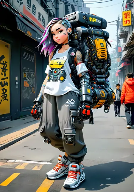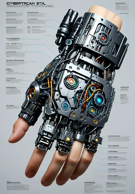 이 모델의 영감은 제목이 암시하듯, 극단적인 사이버 기술이며, 약간의 레트로 퓨처리스틱한 느낌을 가진 괴상한 미학을 상상하는 것에서 비롯되었다. 이 LoRA는 다양한 수준의 정교한 사이버네틱 임플란트를 가진 여러 종류의 사이보그를 잘 구현해낸다. 원하는 결과를 얻기 위해 다양한 신체 부위를 실험해보기를 추천한다.