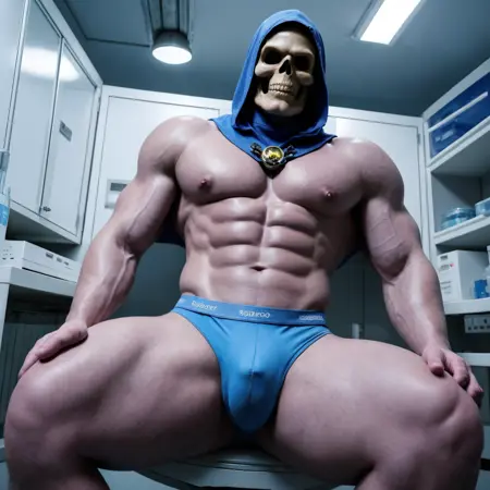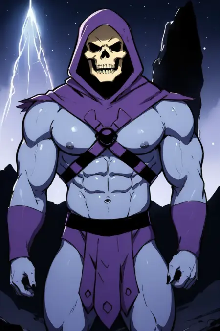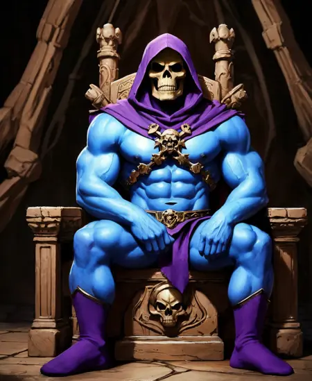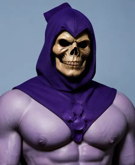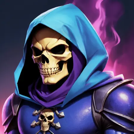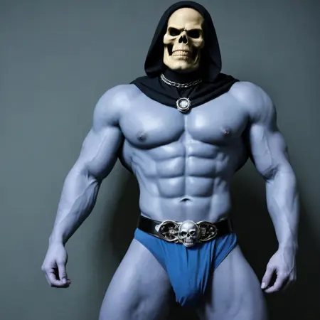 Skeletor is a supervillain and the main antagonist of the “Masters of the Universe” franchise created by Mattel. He is generally portrayed as a malevolent, blue-skinned, skull-faced sorcerer, serving as He-Man's archenemy. In the franchise's story, Skeletor is determined to discover the secrets of Castle Grayskull, believing that this will allow him to conquer the planet Eternia and the entire universe, becoming the “Master of the Universe”.