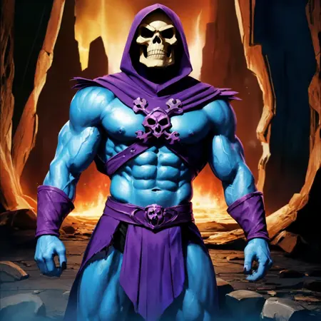 Skeletorは、マテルによって生み出された「Masters of the Universe」シリーズのスーパービランであり、主要なアンタゴニストです。彼は一般的に、青い肌と頭蓋骨のような顔を持つ邪悪な魔法使いとして描かれ、ヒーマンの宿敵として登場します。シリーズの物語において、Skeletorはグレイスカル城の秘密を解き明かそうと必死であり、それが彼にエテルニア惑星と全宇宙を征服し、「Masters of the Universe」になる機会をもたらすと信じています。
