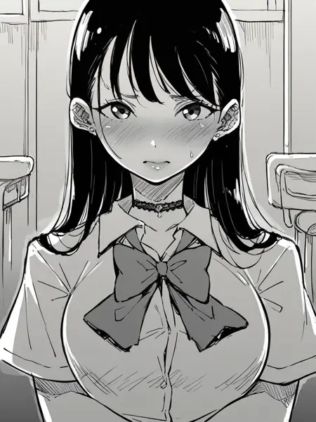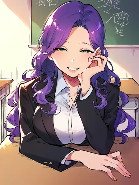 Chie: shibata chie, black hair, low ponytail, earrings,