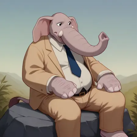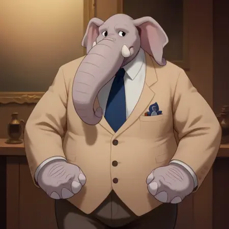 Woolie, solo, 1boy, anthro, black eyes, elephant ears,