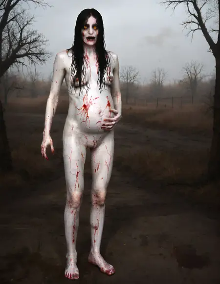 트리거 단어: ALMA_WADE_GIRL, horror body, yellow eyes, black hair, long black hair. 선택 사항: Naked, pregnant, blood, horror.