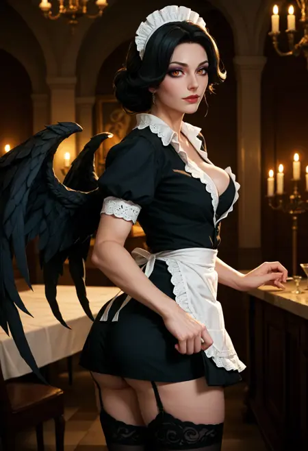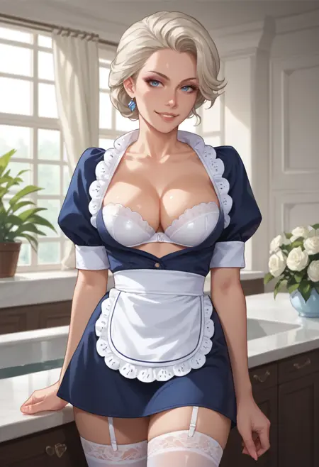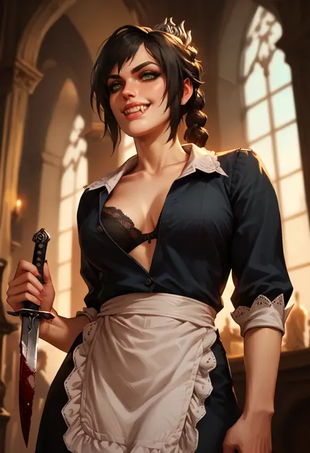 このシリーズは見たことがありませんが、控えめながらも目立つブラの透け感のある現代的なメイド服が気に入りました。彼女はそれだけで圧倒的でした。これは主にコスプレ写真から作成されました。「メイド」とタグに含めているため、頭飾りはかなり派手になっています。頭飾りが不要な場合は、headdressを否定するとよいでしょう。他の多くの要素と同様に、この設定は比較的モジュラーですが、「四角いエプロン」はうまく再現されません。エプロンやメイドエプロンに変更してみてください。勇気があれば試してみてください。