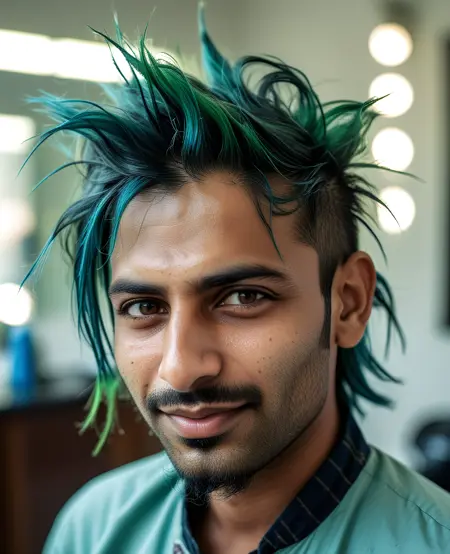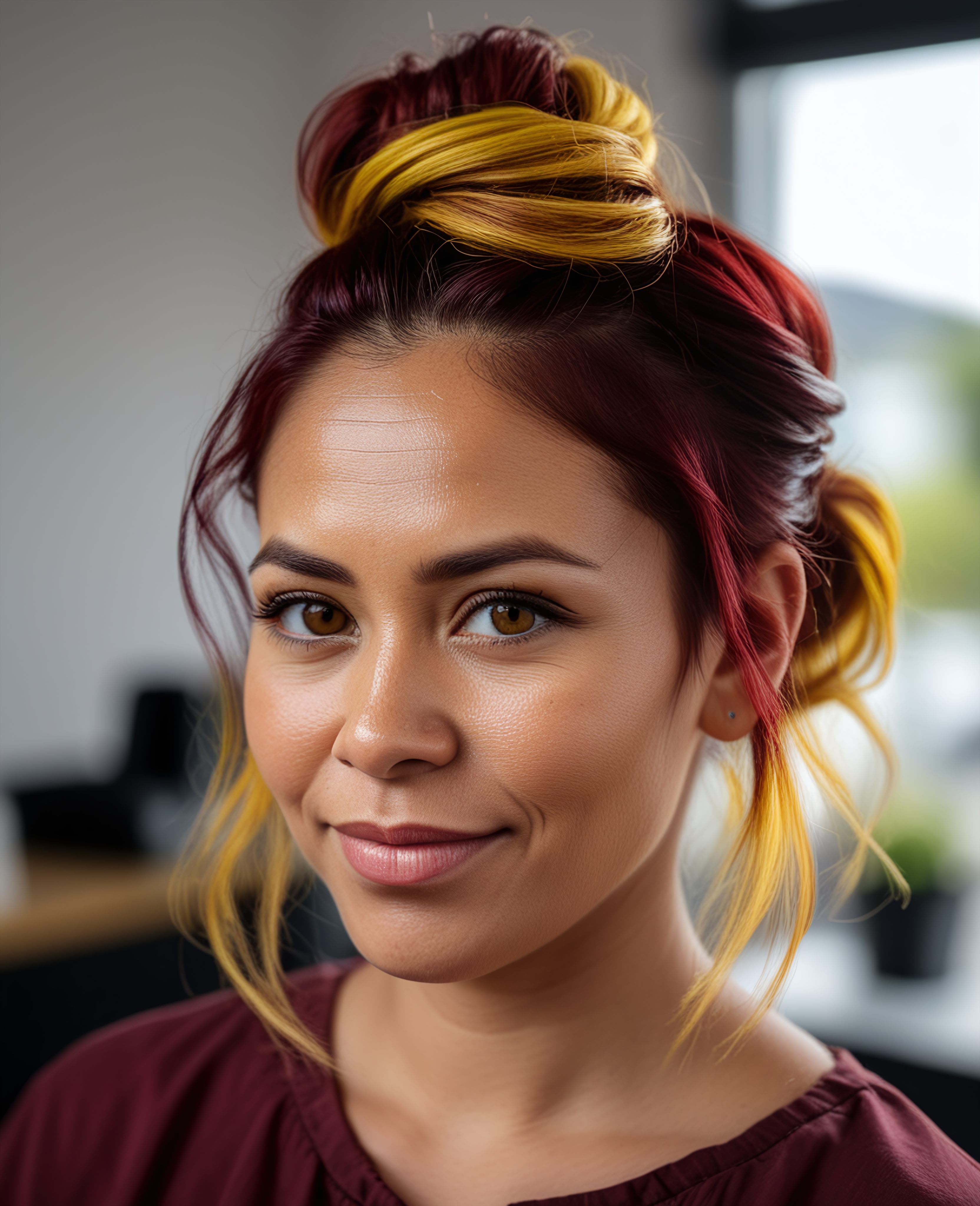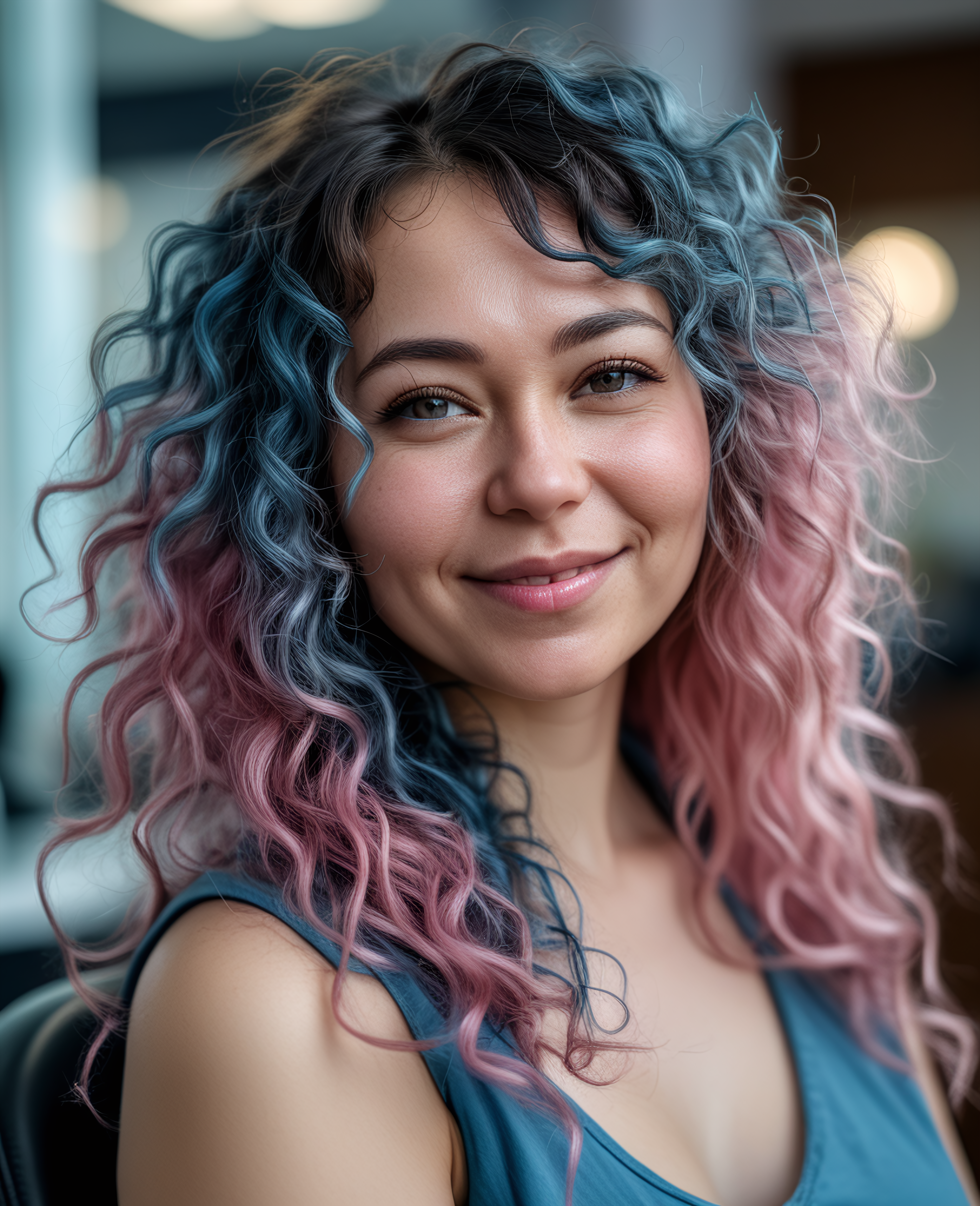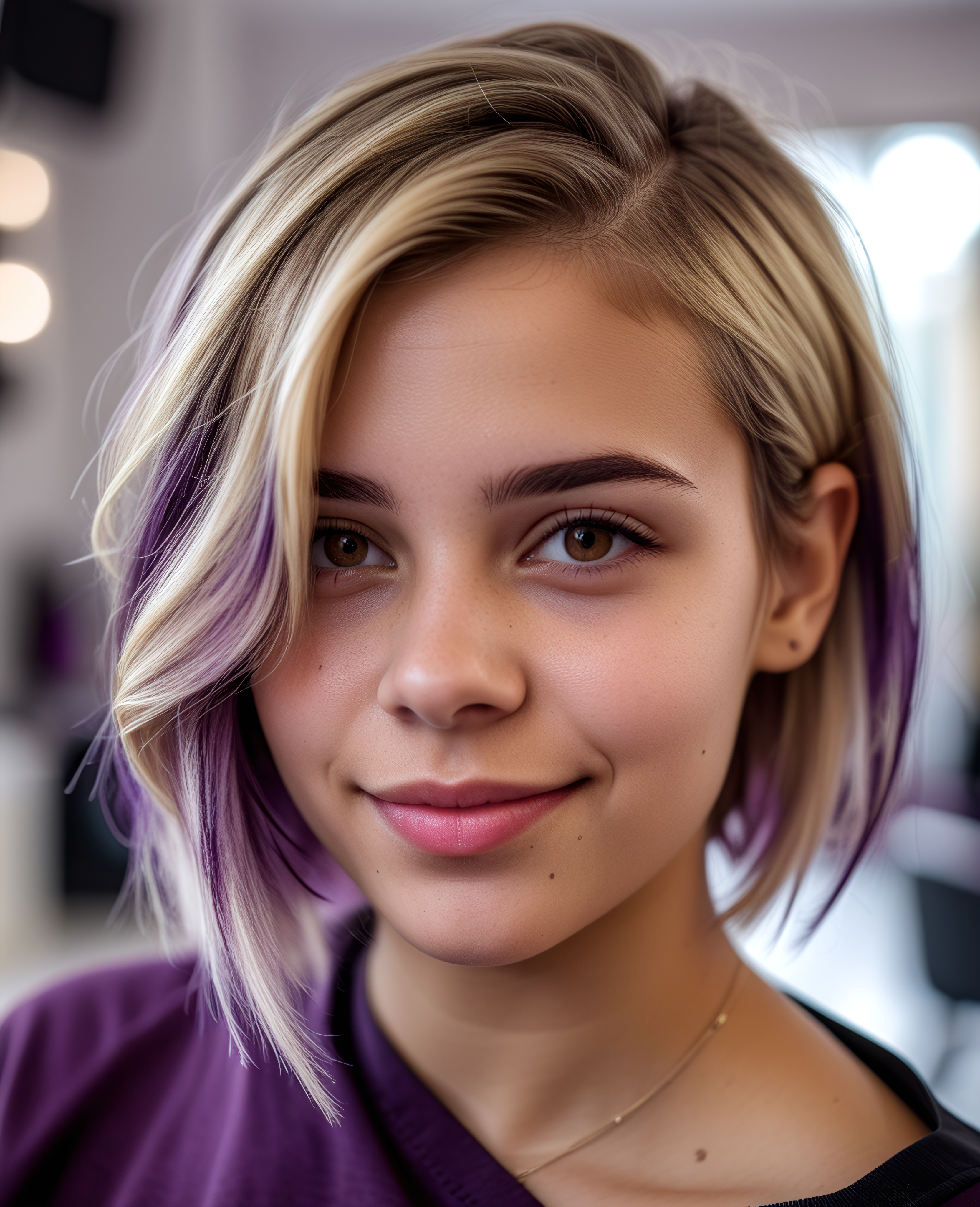 This dynamic prompt picks a random hairstyle with a random dyed haircolor: