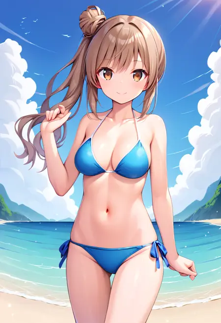satou sasara, brown hair, side ponytail, single hair bun, long hair, brown eyes,
