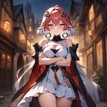 AnimagineXL version follows stylized version of Animagine XL 3.1, so you can literally design any outfit for her available from Animagine XL base model.