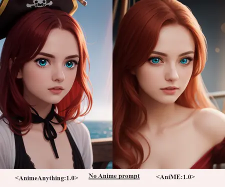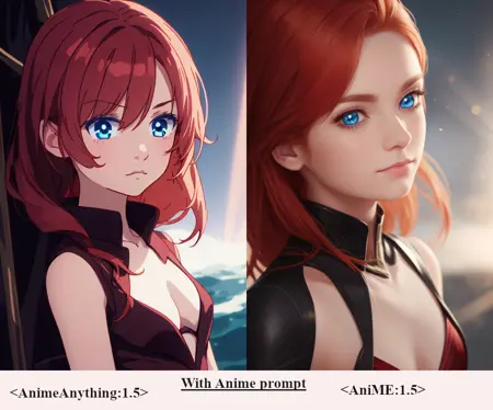 これらを一緒にアップロードしない理由は、スタイルに明確な違いがあるためです。特に高強度(1.0以上)では顕著です。AnimeAnythingは高強度でよりクラシックなアニメ風の外観になりますが、AniMEはよりモダンで3Dレンダリングされたスタイルになります。