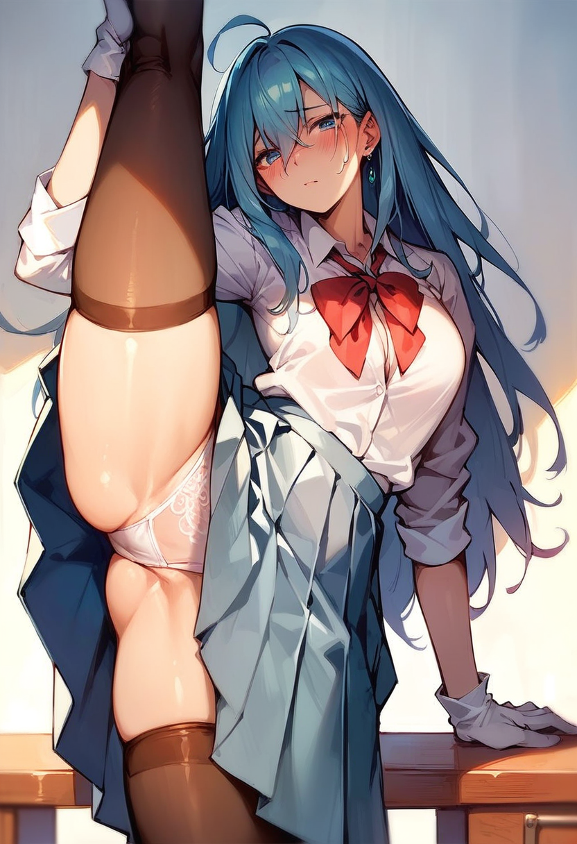Trigger: vivy, 1girl, long hair, bangs, blue eyes, hair between eyes, blue hair, earrings, ahoge