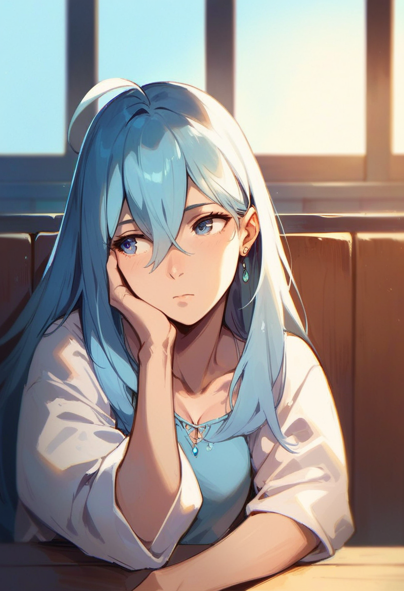 Trigger:vivy,1girl,long hair,bangs,blue eyes,hair between eyes,blue hair,earrings,ahoge