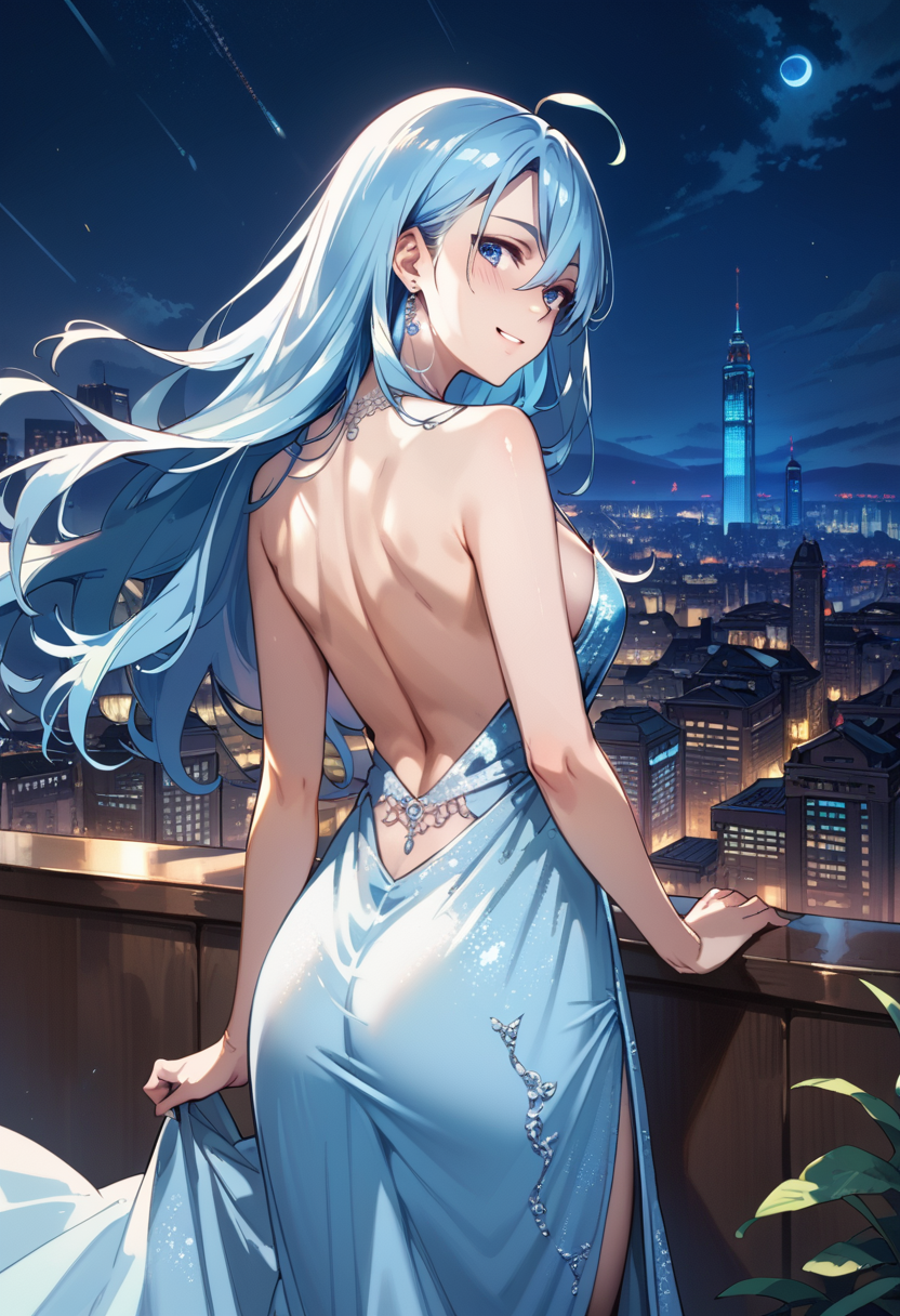 Trigger:vivy,1girl,long hair,bangs,blue eyes,hair between eyes,blue hair,earrings,ahoge