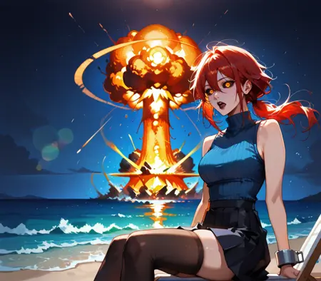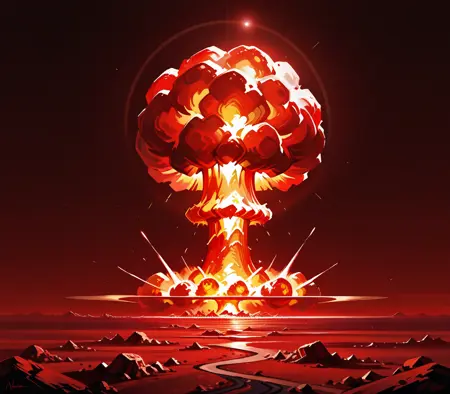 主なプロンプトは以下の通りです:核爆発、背景に核爆発