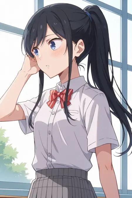 触发词: KJOrin, 黑发, 蓝眼, 长发, 后梳刘海,
