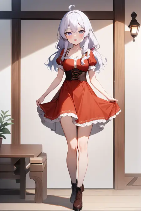 ww-elaina, ドレスシャツ, ブラックスカート, ブラックローブ, 女王の帽子, レッドディルンドル, アホ毛, 短髪, ピンクのドレス, パジャマ, 白いドレス, 黄色いリボン