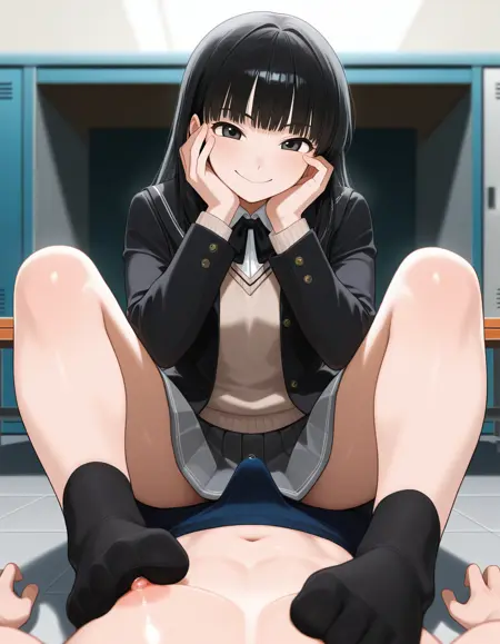 You can also try:foot focus,pov,spread legs,