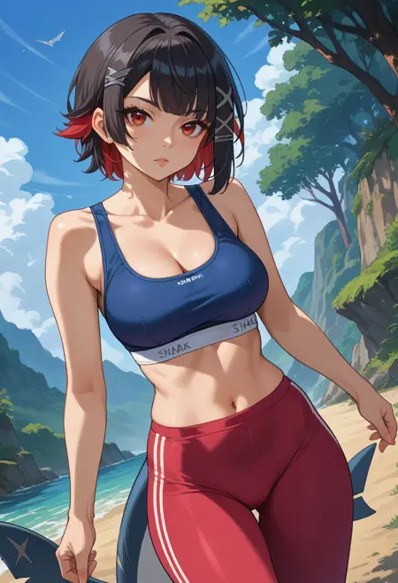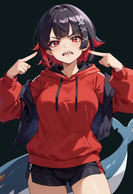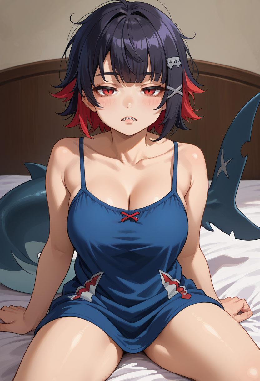 触发词:ellenjoe, 红眼睛, 黑发, 红发, 多色发, 短发, 刘海, x 发饰, 大胸