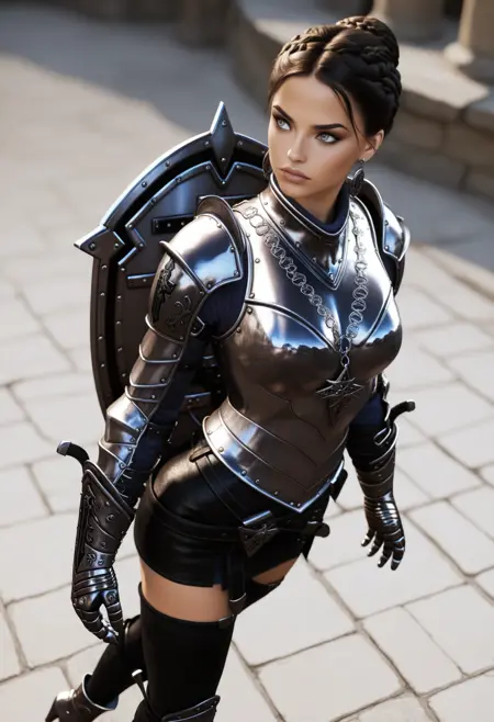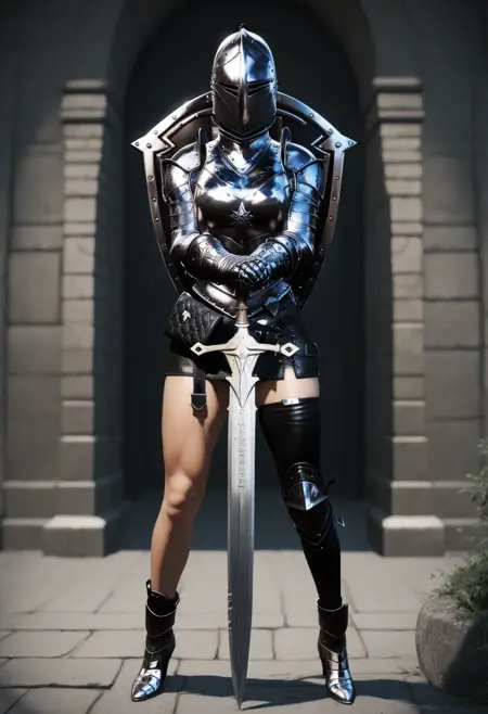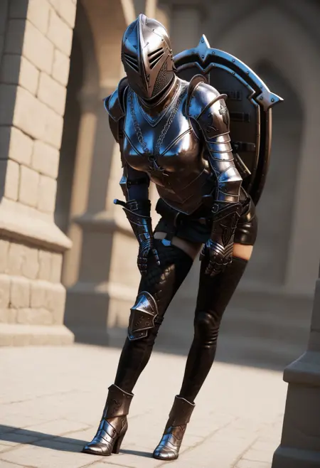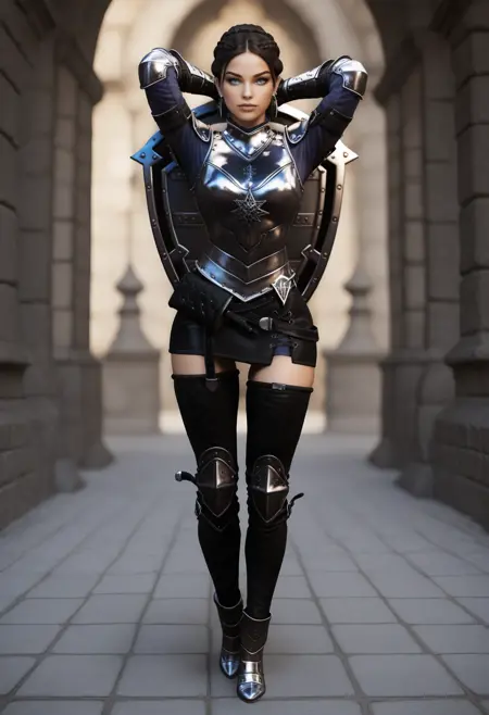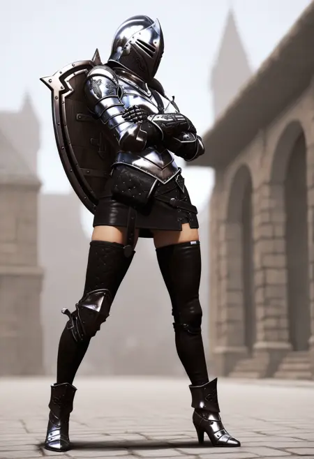 • Primary: d4rkkn1ght, armor, gauntlets, skirt, single thighhigh, boots, earrings, shield:shield on back,