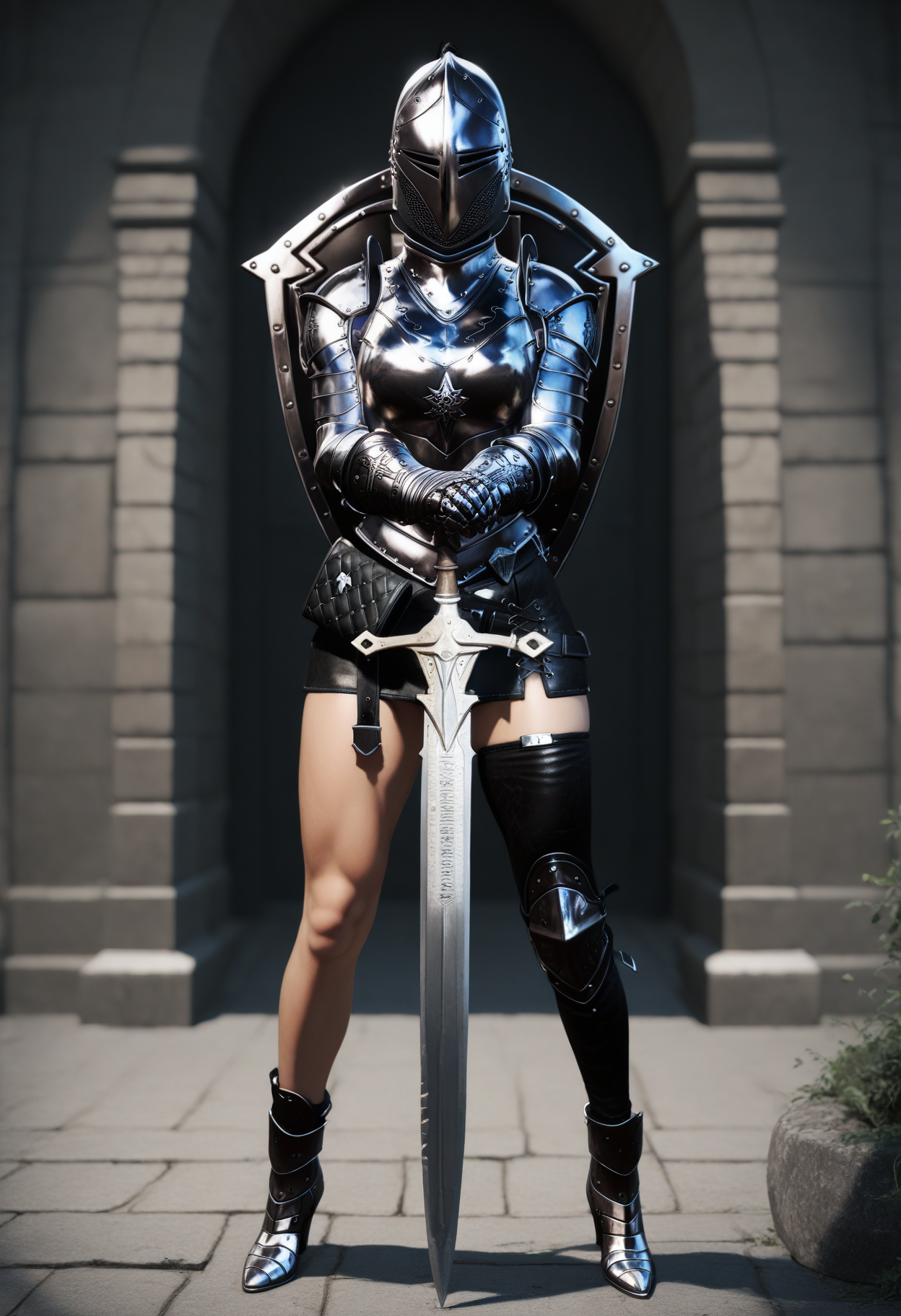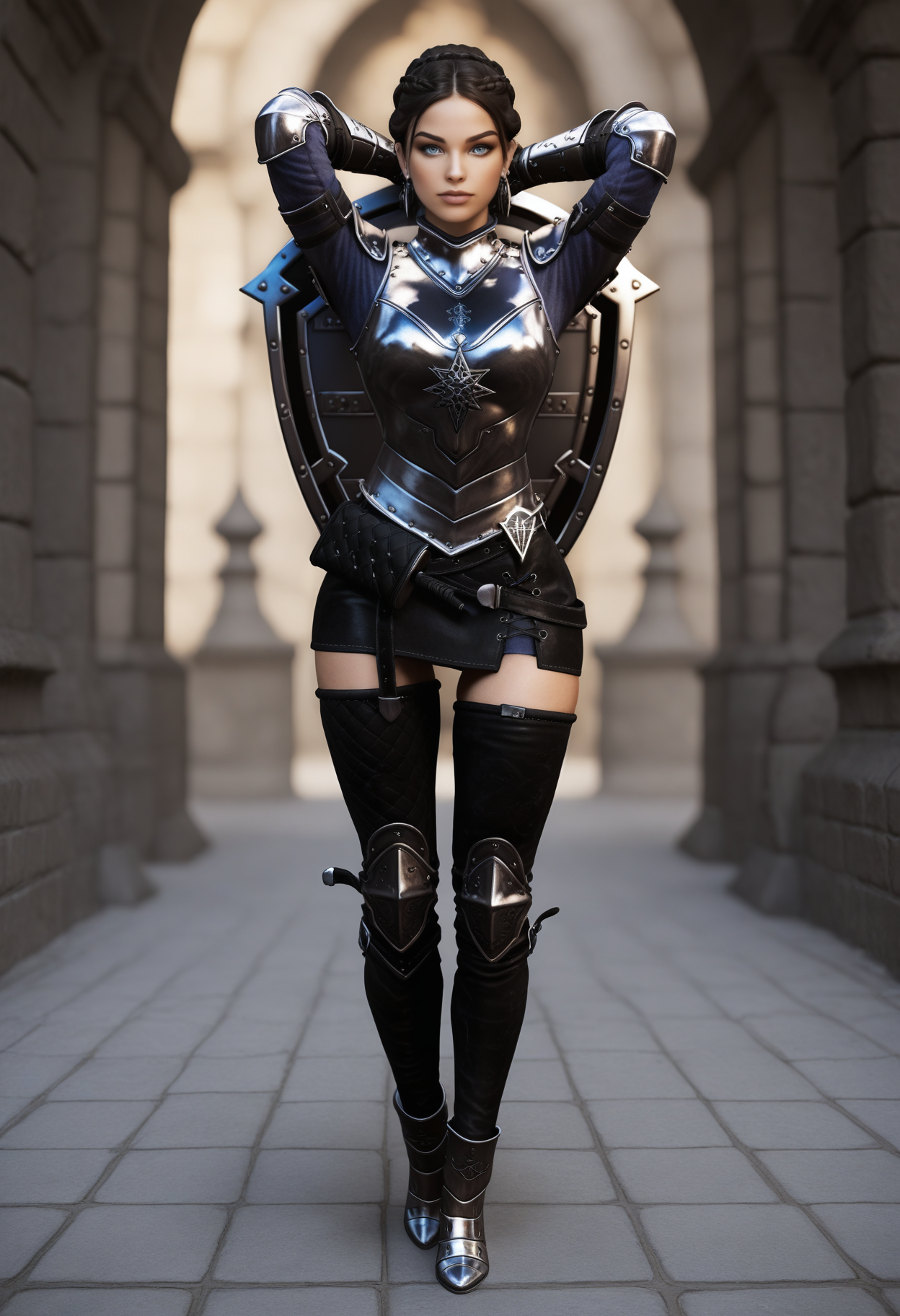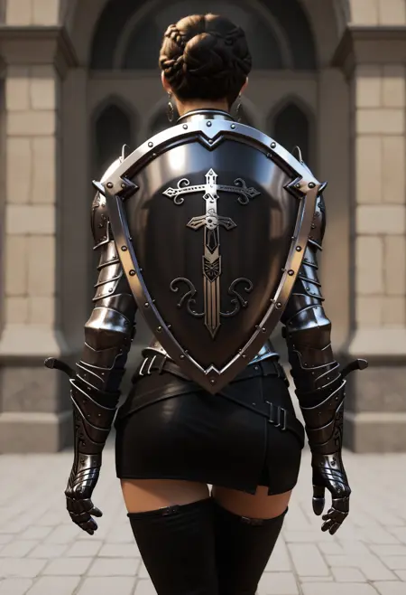 主要: d4rkkn1ght,铠甲,护手,裙甲,单侧大腿袜,靴子,耳环,盾牌:盾牌背负