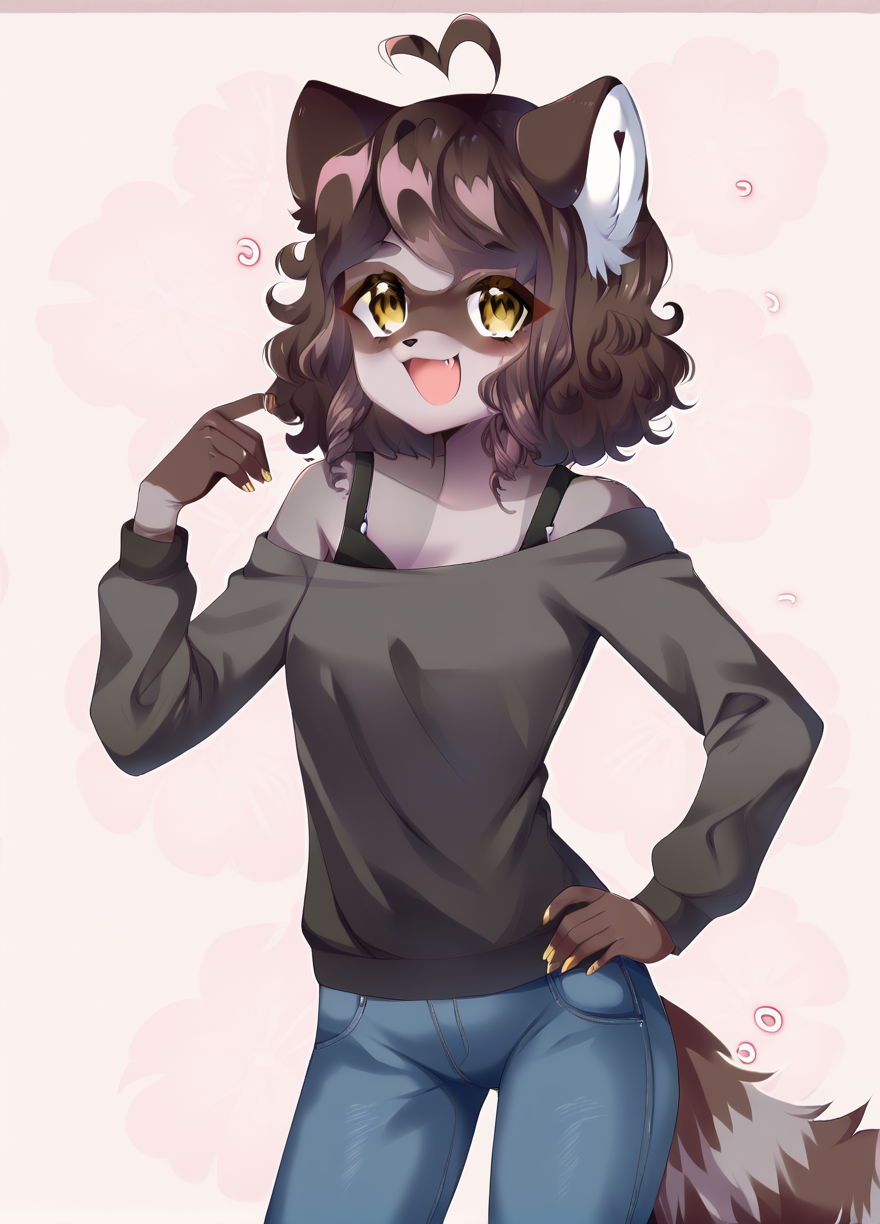 furry female, animal ears, furry, yellow eyes, heart ahoge, tanuki, raccoon tail, raccoon ears, Anthro, Tanuki girl, Curly Hair,