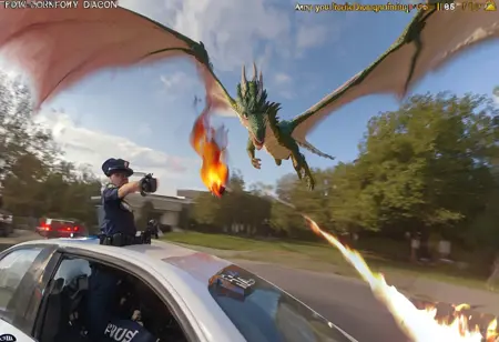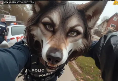 第一人称/真实低画质标签:pov,执法记录仪画面,第一人称视角,低质量摄像头,低分辨率,画质差,运动模糊,扫描线,假截图,鱼眼镜头,英文文字,低质量广播画面