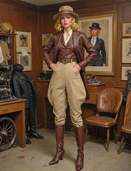 20세기 전반기 군인, 여행자, 모험가 복장에 사용된 상징적인 바지. 디젤펑크 및 스팀펑크 테마의 예술에 유용할 수 있습니다.