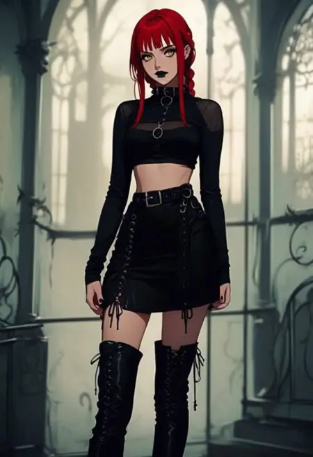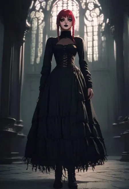 它能生成什么样的衣服?嗯,我训练这个模型来生成:平台靴、靴子、束身衣、渔网连裤袜、裙子、裤子、乳胶衣物(裤子、裙子)、连衣裙、洛丽塔裙、短款上衣、渔网短款上衣、一些露脐紧身衣(我觉得这个效果不太行)以及哥特式连衣裙。我还训练了模型在短款上衣、连裤袜、裤子、裙子、束身衣和连衣裙上添加系带绳。