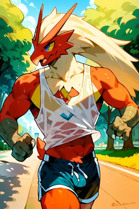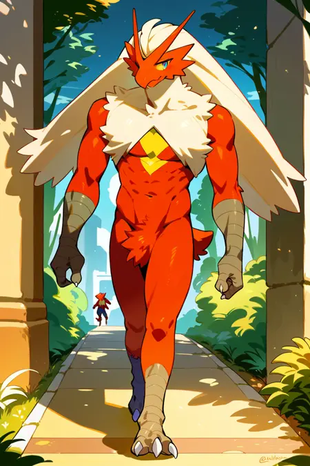 Trigger word: BlazikenPXLReinforcement Tags: anthro, yellow sclera, blue eyes,