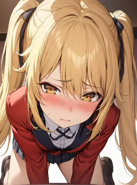 サオトメ・メアリ、金色の目、金色の髪、長い髪、ツインテール、Hyaka_学校制服、赤いジャケット、白いシャツ、黒いリボン、プリーツスカート、長袖、