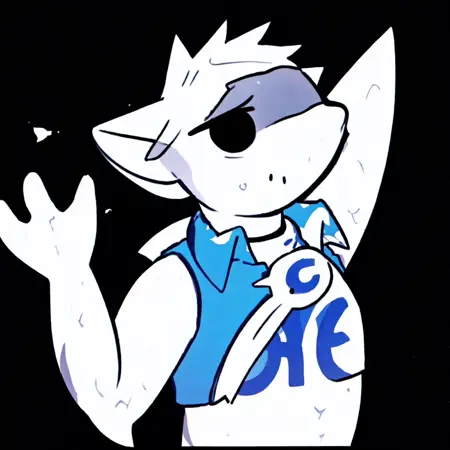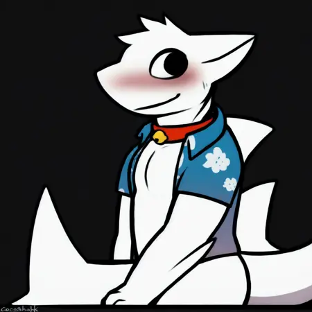 cocoshark, white shark, shark, solo, black eyes, 1boy, solo